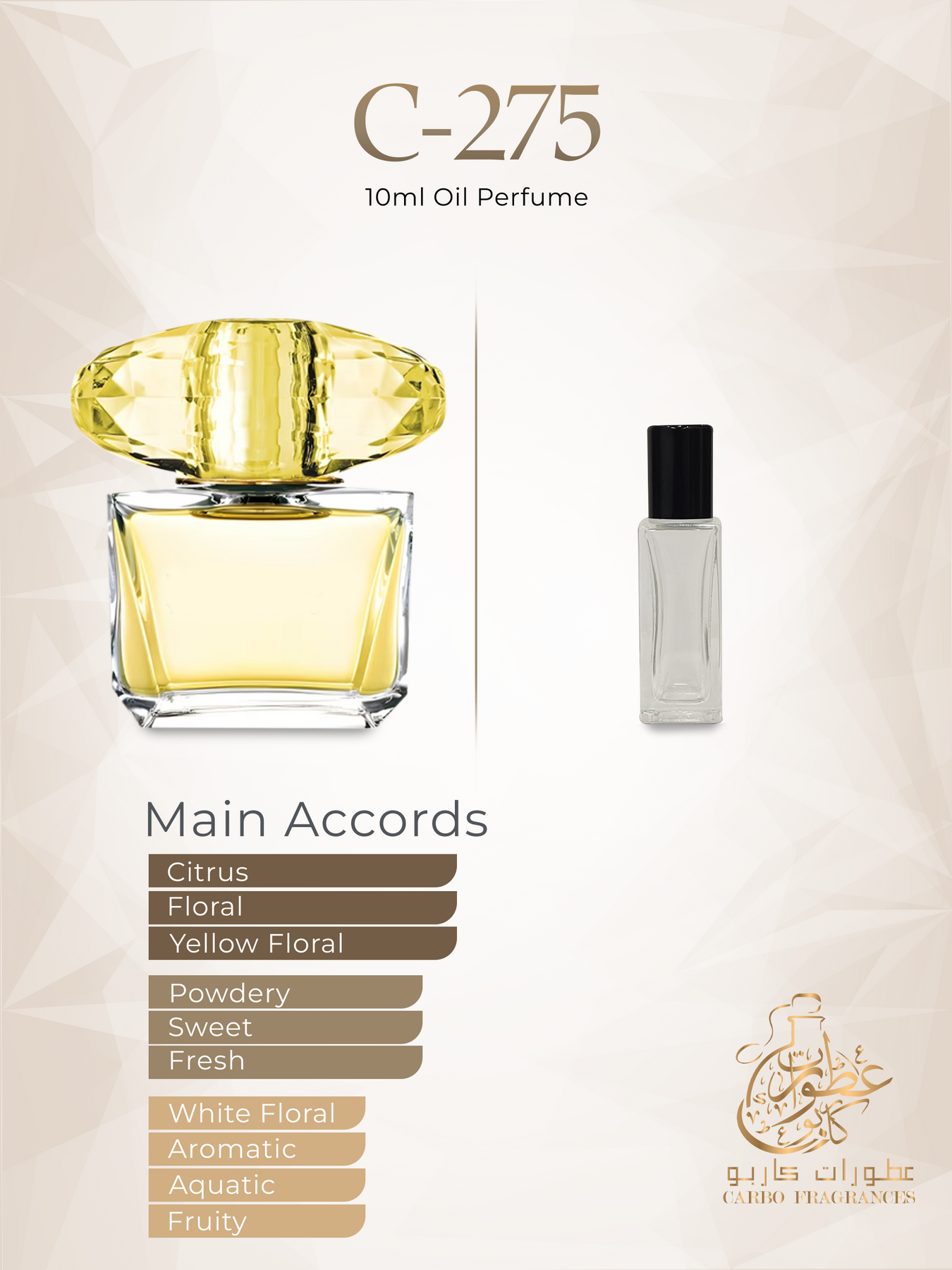 Disclaimer: Our Creations of perfume and oils are impressions and versions of famous brand fragrances and not associated in any way with the designer brands or manufacturers mentioned on it. Name trademarks and copyrights are properties of their respective manufacturers and / or designers. Designer / brand Name is solely used for comparison purposes to give customers an idea of fragrance character and scent accords.